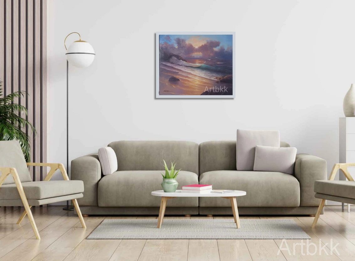 ภาพวาดสีน้ำมันวิวทะเลพระอาทิตย์ตกดิน Sunset sea